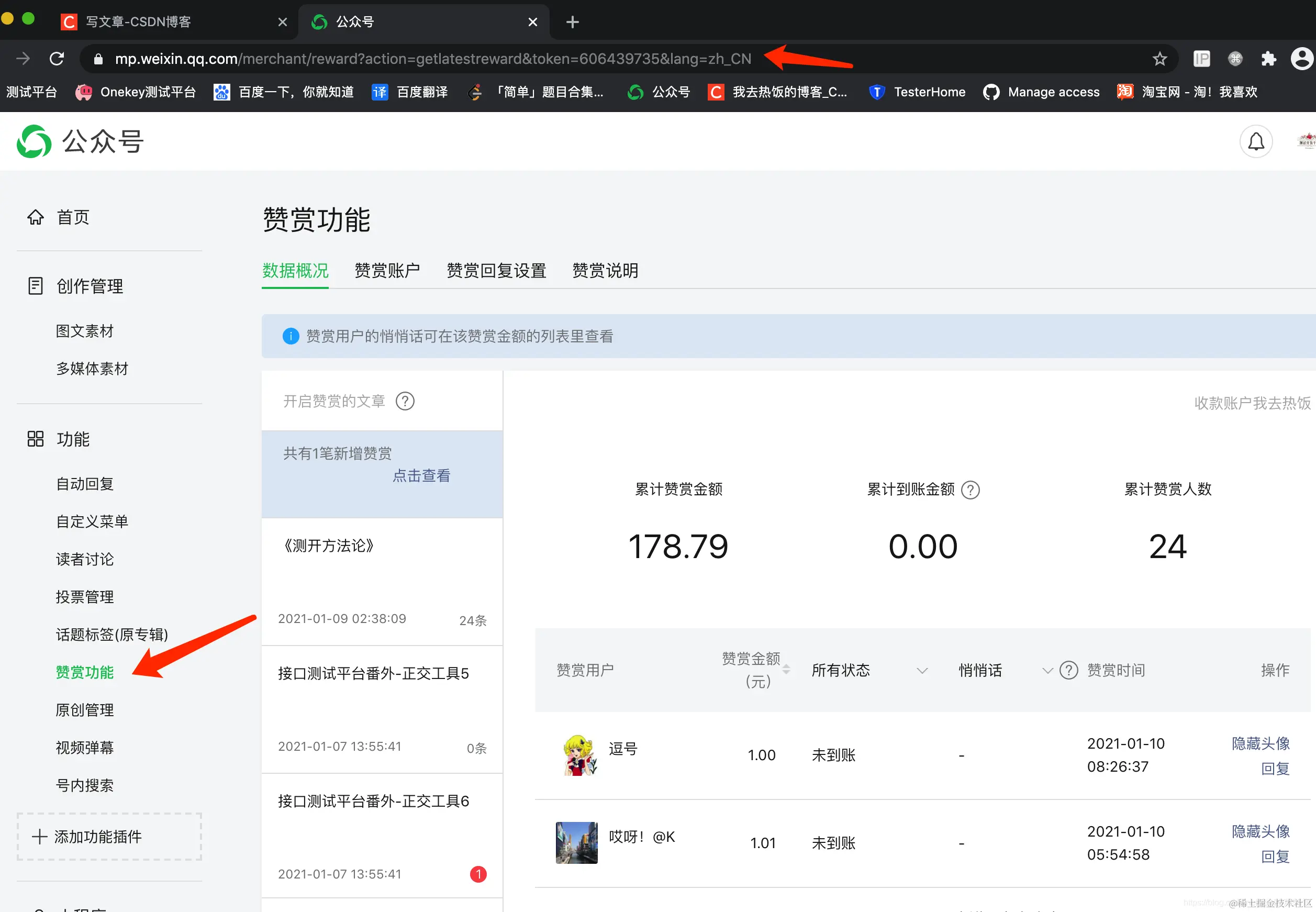 其中的url地址,请替换成自己的公众号赞赏页面的地址哦~