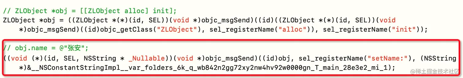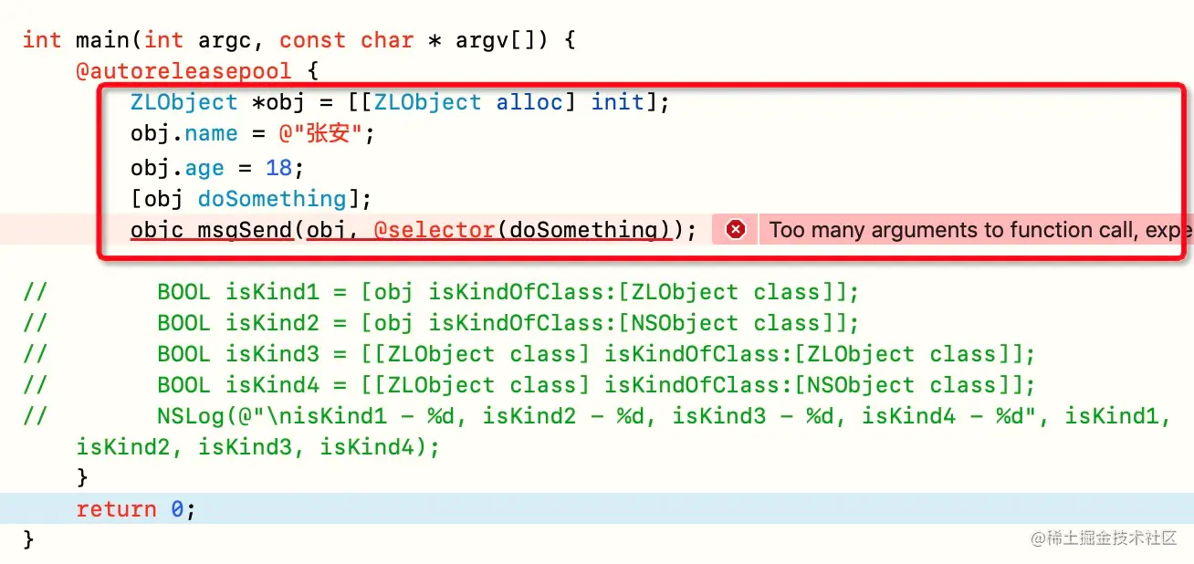 objc_msgSend(消息接收者,消息的主体(sel + 参数))
