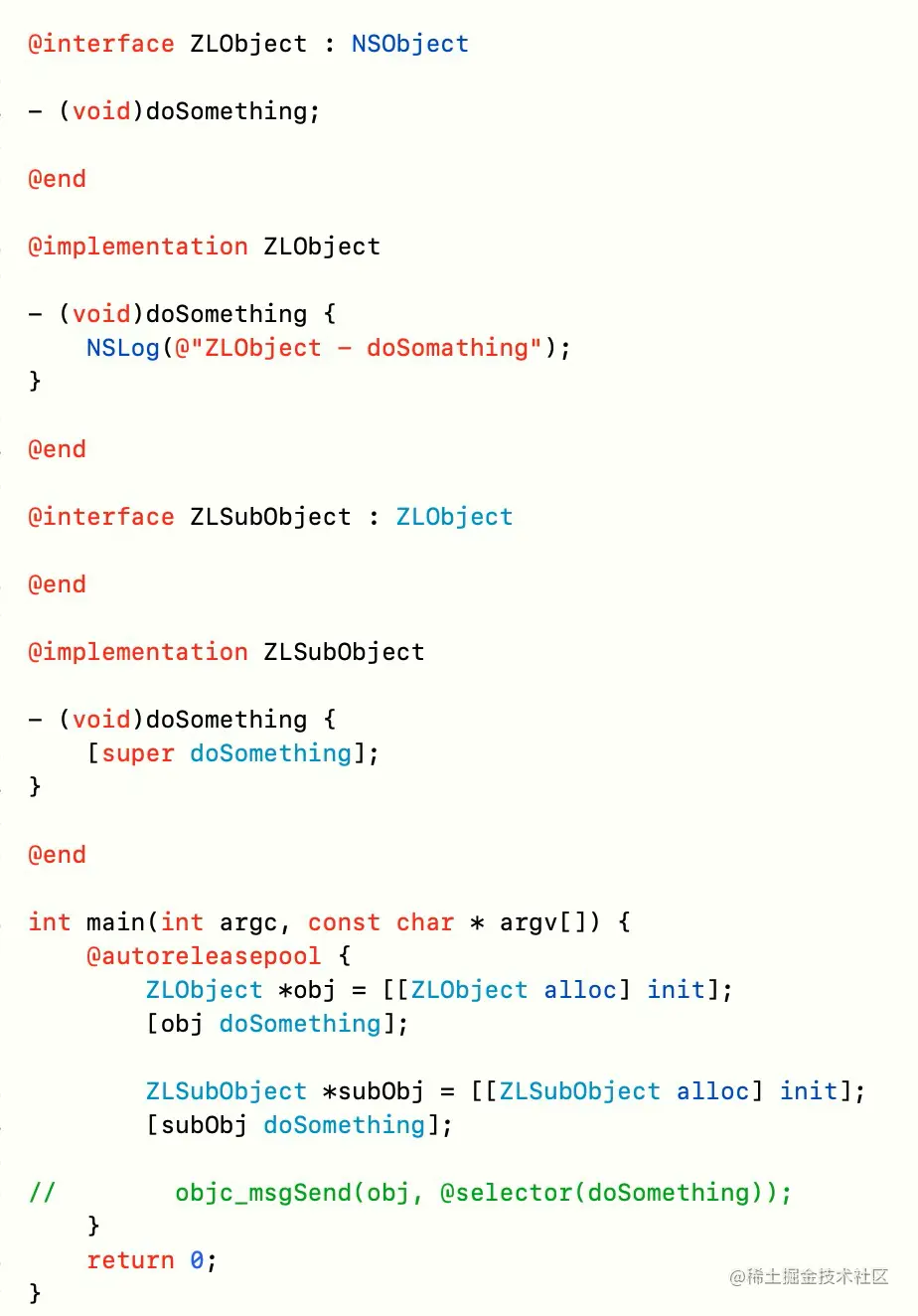 添加一个 ZLObject 的子类 ZLSubObject ,并重写doSomething,如下: