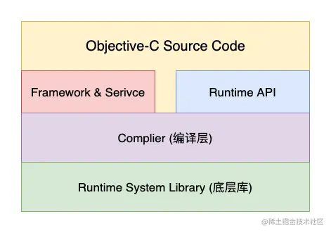 需要编写和编译 Objective-C 源码,runtime 将完成 OC 编译成 C 的过渡,实现底层 runtime API 的转变,比如: