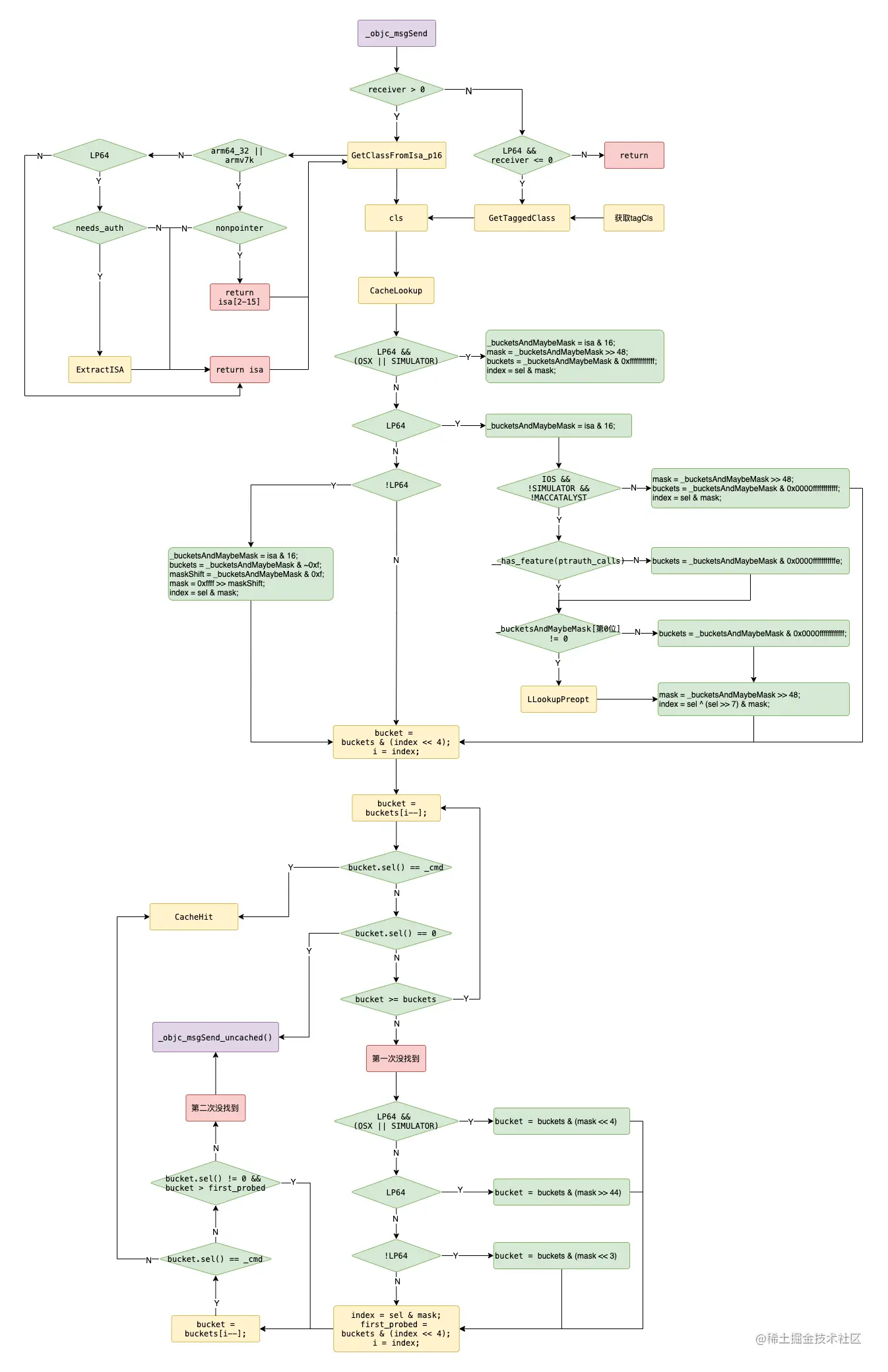 // objc_msgSend 汇编入口 (主要是通过 isa 拿到接收者类,进而拿到cache)