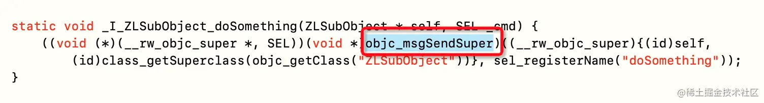 调用 objc_msgSendSuper 函数: