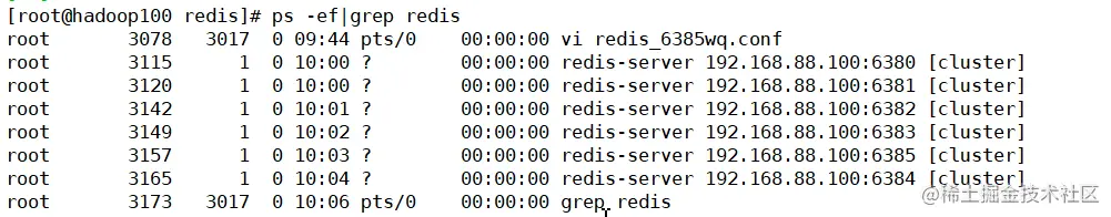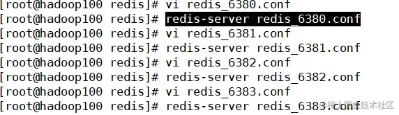 1 redis-server redis_6380.conf 2 redis-server redis_6381.conf 3 redis-server redis_6382.conf 4 redis-server redis_6383.conf 5 redis-server redis_6384.conf 6 redis-server redis_6385.conf