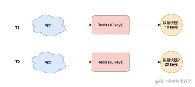 - 此时你拿一个相机给这个水杯拍一张照片,拍照的这一瞬间,照片中记录到这个水杯中水的容量,就是水杯的数据快照