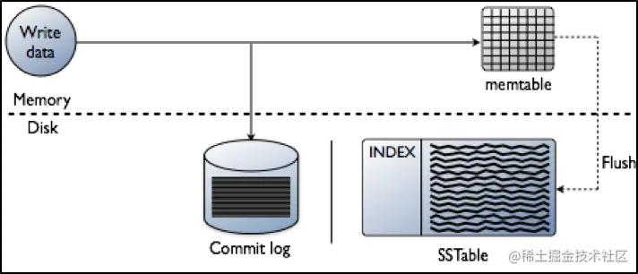 - 然后,数据被写入一个memtable,这是内存中模式的哈希图。