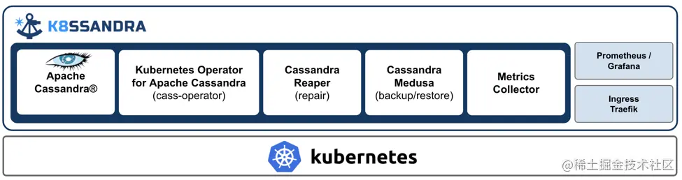 我相信你一定在YouTube上看到过这样的视频:有人打开某个新产品并描述盒子里的内容。在我们深入了解K8ssandra的细节时,这带来了一个很好的观点。这不是一个单一的可执行文件,也不是一个可以展开的tarball。这是要用helm[3]来部署的,它是Kubernetes的打包工具,可以使安装变得简单。使用K8ssandra的真正价值在于你拥有一个典型的运行中的Cassandra集群所需要的所有东西,并进行了配置和装箱,随时可以使用。因此,让我们打开盒子,看看里面有什么(图1)。