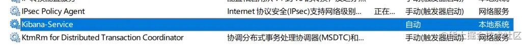 设置完成后点击Install service按钮即完成,此时去查看系统服务有多了一个叫Kibana-Service的服务了