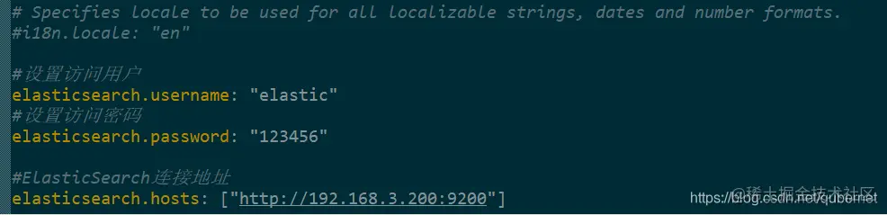 如果ElasticSearch设置了域名或IP访问,还需要设置安装目录config中的kibana.yml文件,具体修改如下