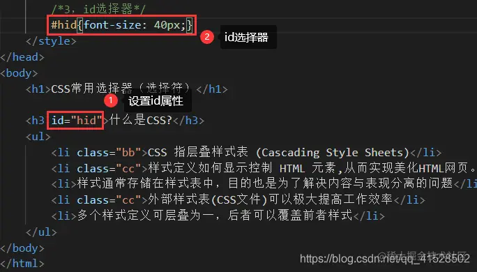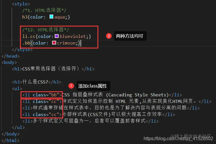 - .mc{color:blue;} /* 凡是class属性值为mc的都采⽤此样式 */