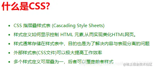 <li>样式定义如何显示控制 HTML 元素,从而实现美化HTML网页。</li>