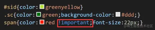 选择符的优先级:从⼤到小 [ID选择符]->[class选择符]->[html选择符]->[html属性]