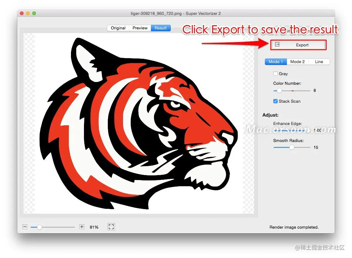 **步骤 4.**将 SVG 矢量图像文件导出到您的 Mac。SVG矢量文件可以通过许多图形设计软件打开和编辑,如Photoshop、Illustrator等
