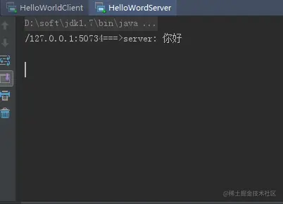 上面服务器端和客户端的代码都已经写完,下面我们先启动服务端,然后启动客户端,程序中我是在客户端让手动输入,输入结束之后回车,服务器端即可接受数据。