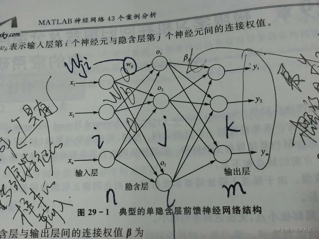 典型的单隐层前馈神经网络如上图所示,输入层与隐含层,隐含层与输出层之间是全连接的。输入层的神经元的个数是根据样本的而特征数的多少来确定的,输出层的神经元的个数是根据样本的种类数来确定的