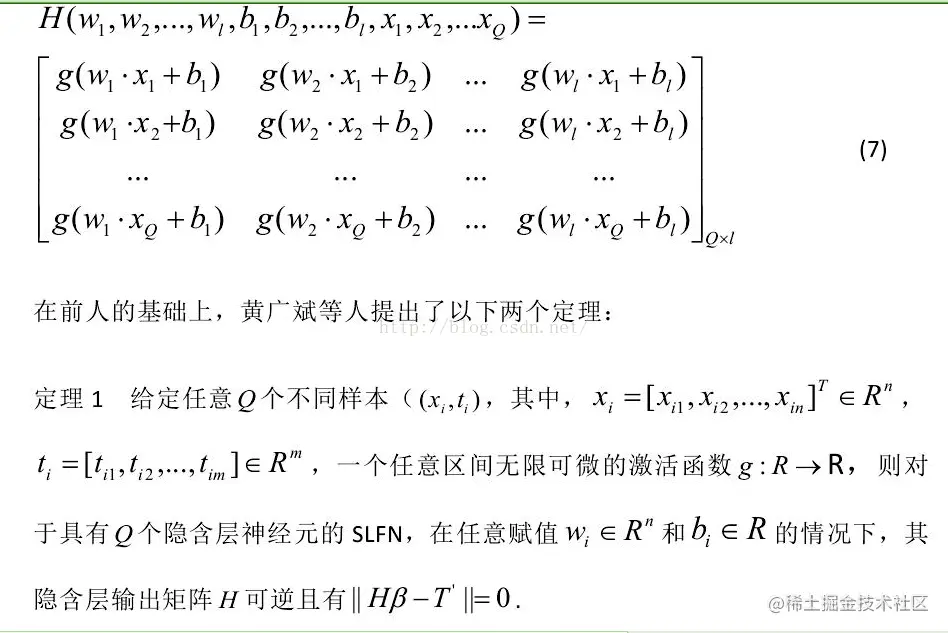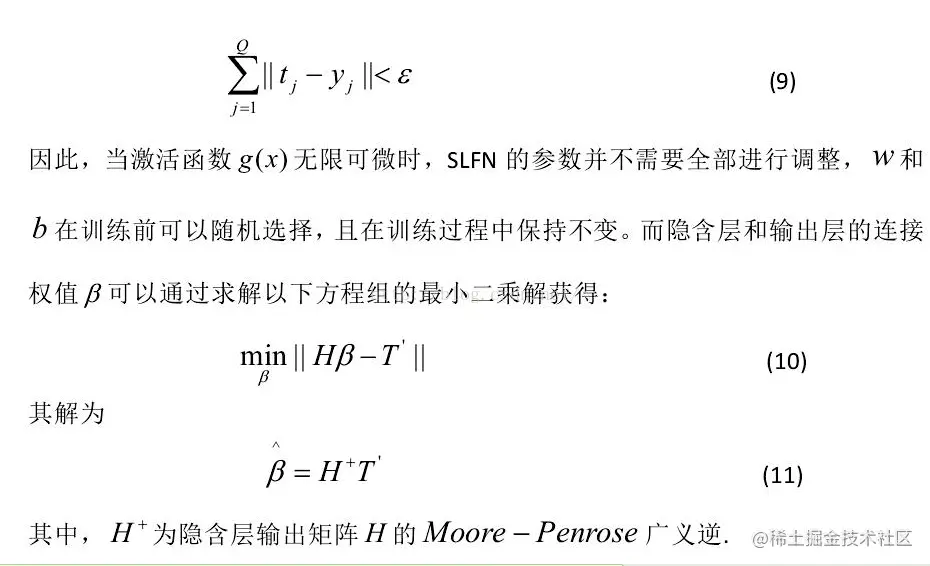 当隐层神经元的个数和样本数相同时(10)式有唯一的解,也就是说零误差的逼近训练样本。通常的学习算法中,W和b需要不断进行调整,但研究结果告诉我们,他们事实上是不需要进行不断调整的,甚至可以随意指定。调整他们不仅费时,而且并没有太多的好处。(此处有疑虑,可能是断章取义,这个结论有可能是基于某个前提下的)。