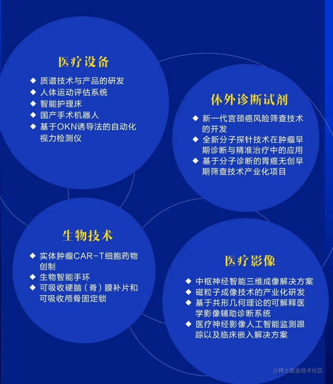 **生物技术:**实体肿瘤CAR-T细胞药物创制、生物智能手环、可吸收硬脑(脊)膜补片和可吸收颅骨固定锁;