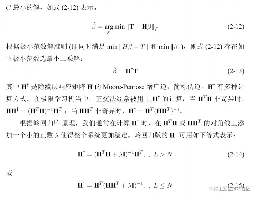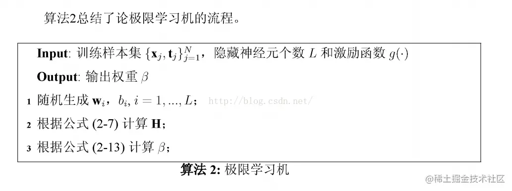 对比图2.2,缺少了输出层偏 置bs,而输入权重w和隐藏层偏置bi随机产生不需要调整,那么整个网络仅仅剩下输出权重beta一项没有确定。因此极限学习机