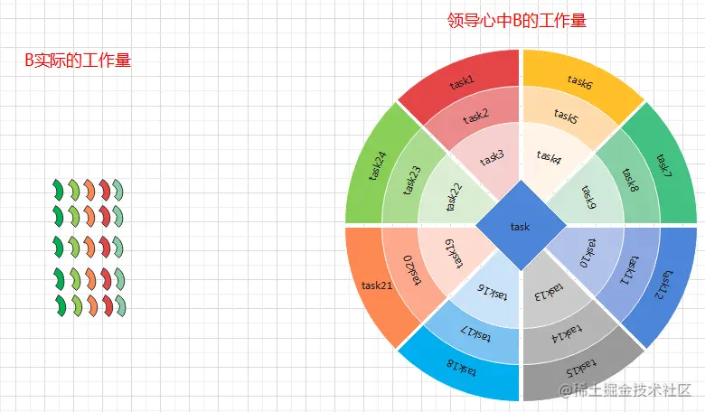 而另外一个同事,做的任务也许实际加起来都不到1,但是人家架不住数量多,一个个叠加起来,在领导的心理就会被无形中放大。