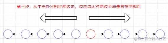 判断链表中点前后是否相同,达到判断回文串的目的,如下图所示