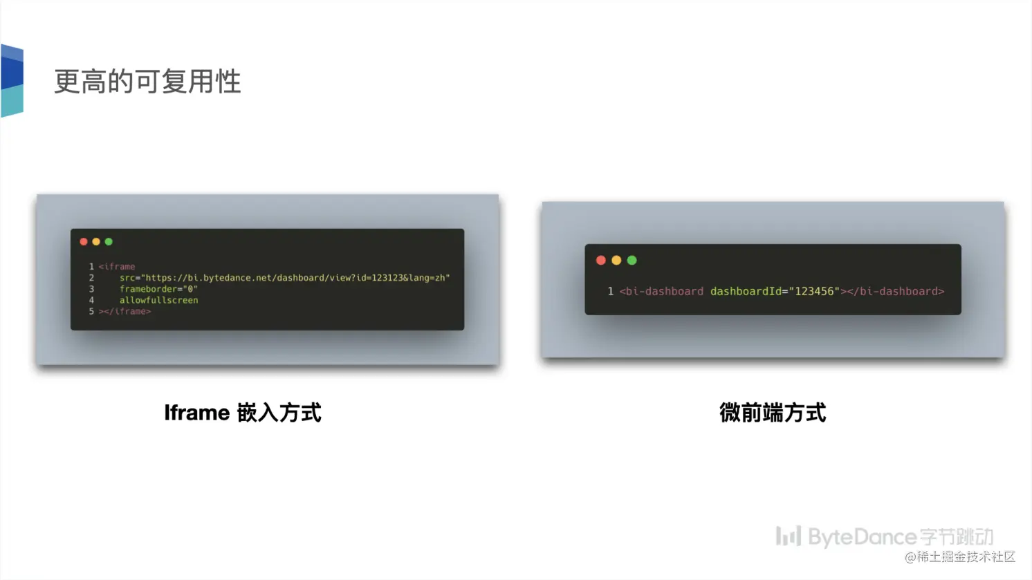 其实在整个业务的迭代演进过程中,我们的 BI 系统也有了一个更深的思考,而且我们也希望对未来有更远的展望。其实我们是更希望现在 BI 系统能够成为一个更灵活的数据中台,不单单去服务于业务,像比如我们现在已经实现的能力,如果别的业务想要复用我们系统制作的报表,他直接通过 iframe 的形式将我们系统内的报表嵌入到他们的系统中。并且我们未来也希望能借助像微前端这样的能力,让我们系统中的报表,亦或是一些图表组件,能够不局限于我们的开发框架,也能快速地被其他系统更灵活地复用。