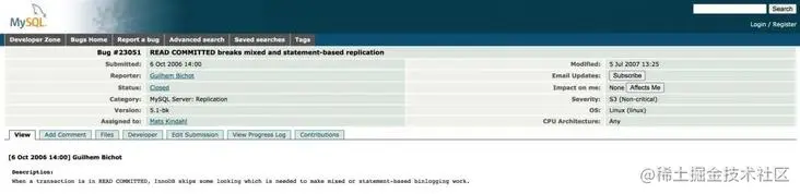 比如,在MySQL官网上,有人就给官方曾经提过一个相关的Bug