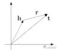 该类模型的基本思想是从三元组的结构出发学习知识图谱的实体和联系的表示,其中最为经典的算法是 TransE 模型。该方法的基本想法是头向量表示 h 与关系向量表示 r 之和与尾向量表示 t 越接近越好,即 h+r≈t。这里的“接近”可以使用 L1 或 L2 范数进行衡量。原理图如下:
