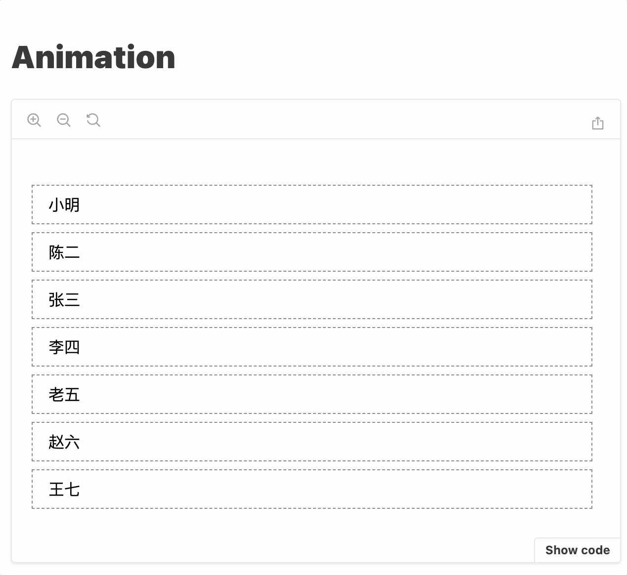 动画使用 `react-flip-toolkit` 库实现