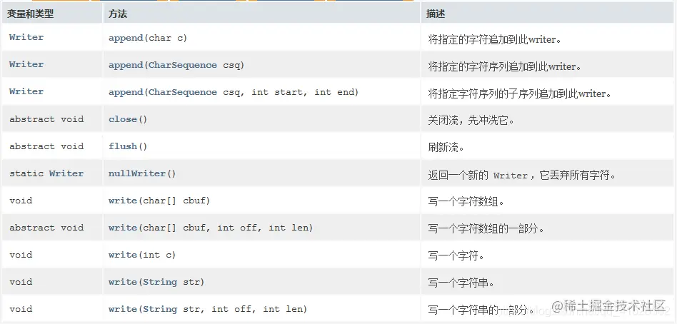 append与write在实际实现上,没有区别,但是append会返回Writer对象;