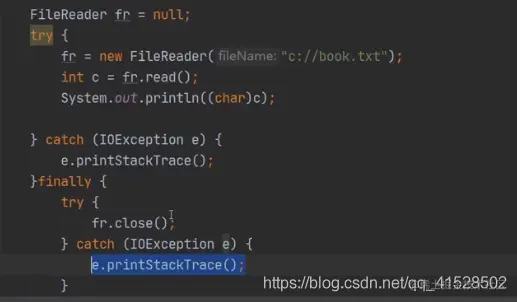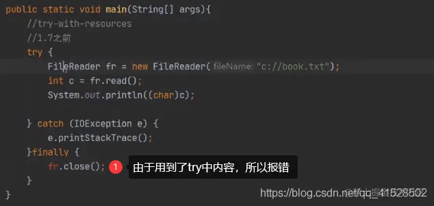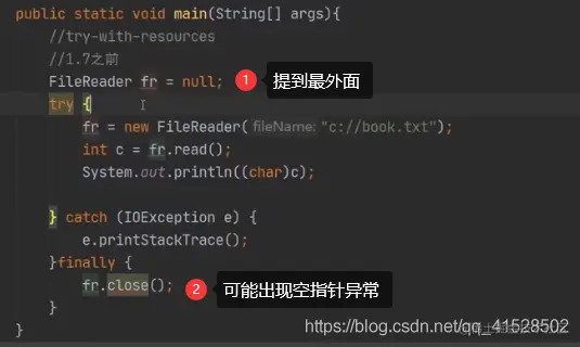 3)所以需要将fr提到try之前,但仍可能产生空指针异常