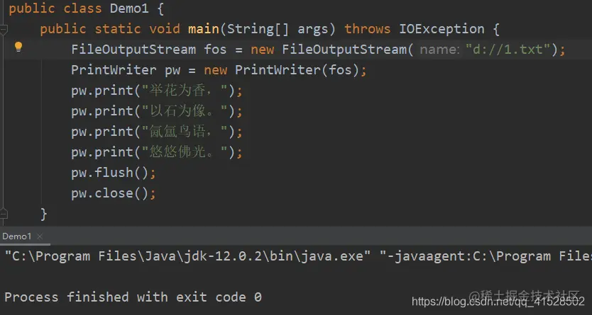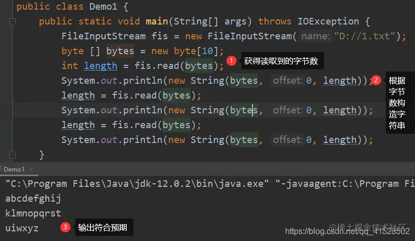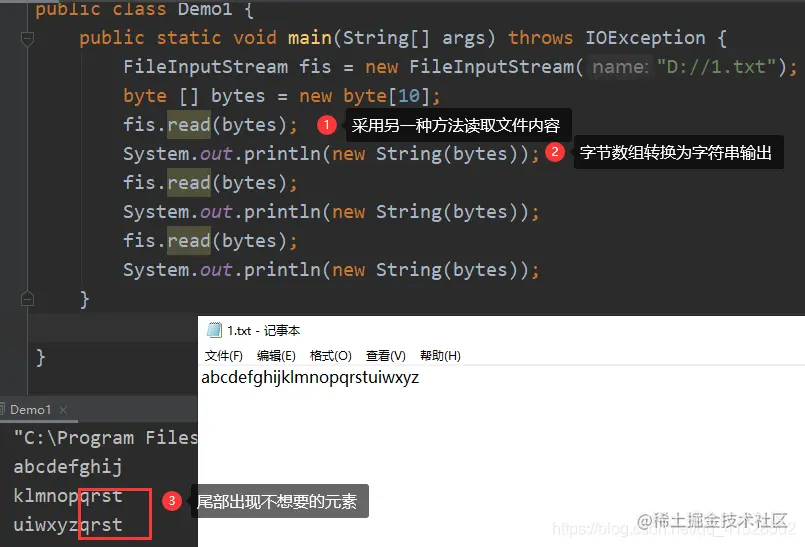 注:代码中漏掉了fis.close(),这种错误一定要避免!!!