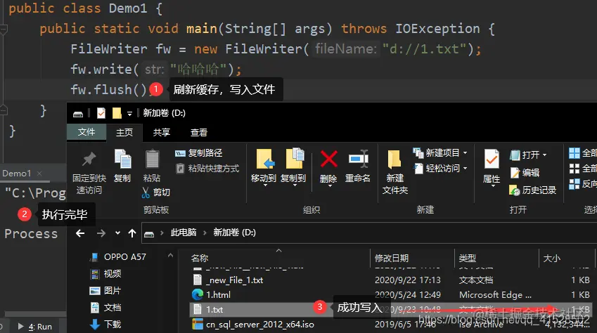 字符输出流fw.flush()会将缓存中字符强制写入到文件中,fw.close()也会有此效果;