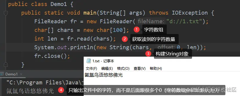 字符输出时,以字符为单位,但计算机中都是以字节为单位。当一个字符占用多个字节时,字符输入流未读取单个字符全部字节之前,会将已读取字节放入缓存;