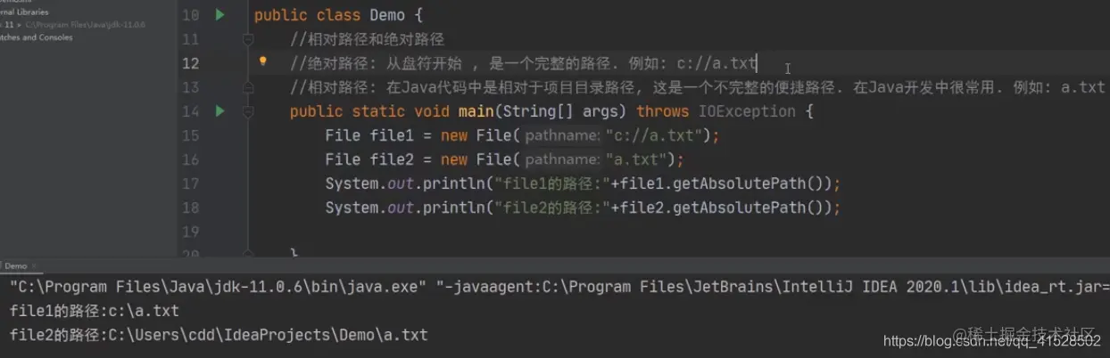 相对路径:java中是相对于项目目录路径,这是一个不完整的路径,在Java开发中很常用 例如 a.txt