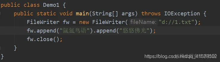 append方法的返回值(Writer类型)可以强转为该对象(FileWriter类型),所以可以继续调用append,因而称为“追加”;