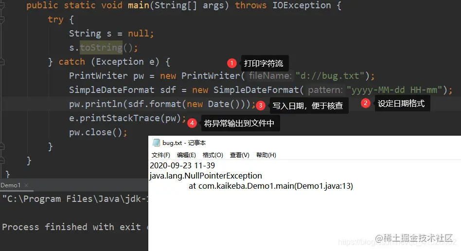 可以将异常信息保存在txt文档中,并加上日期,便于后期核查