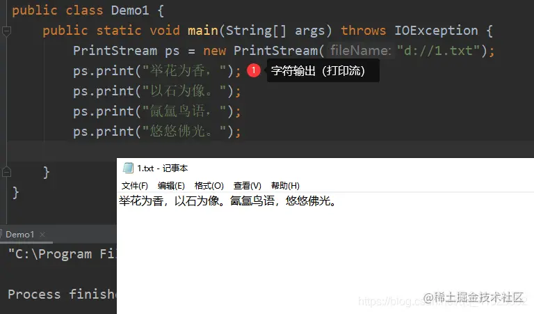 打印字节流和打印字符流在使用上差别不大,但字符流需要调用flush,否则不会写入到文件中;