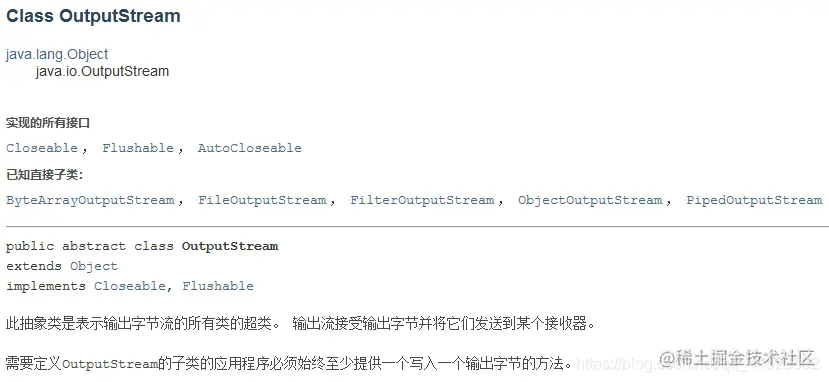 * 后续学习的任何流 , 在传输时底层都是二进制.OutputStream是抽象类