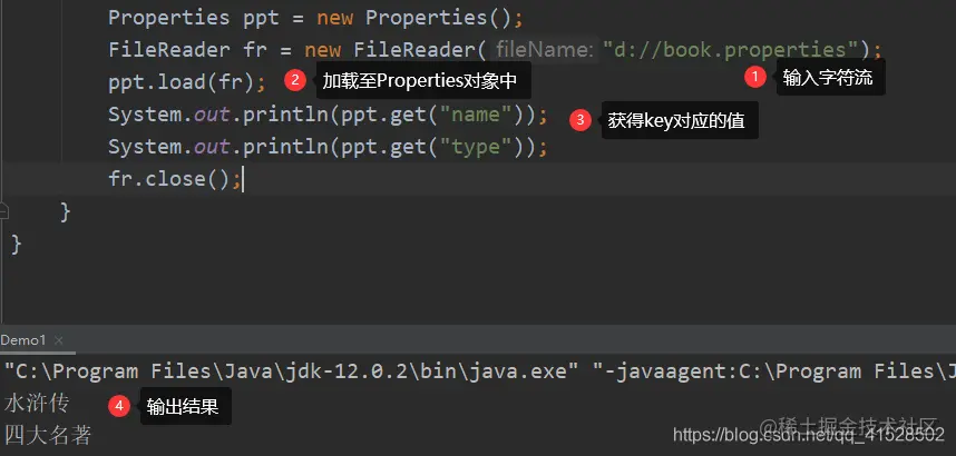 2)load方法:将字节流/字符流指向的文件内容加载到properties对象中