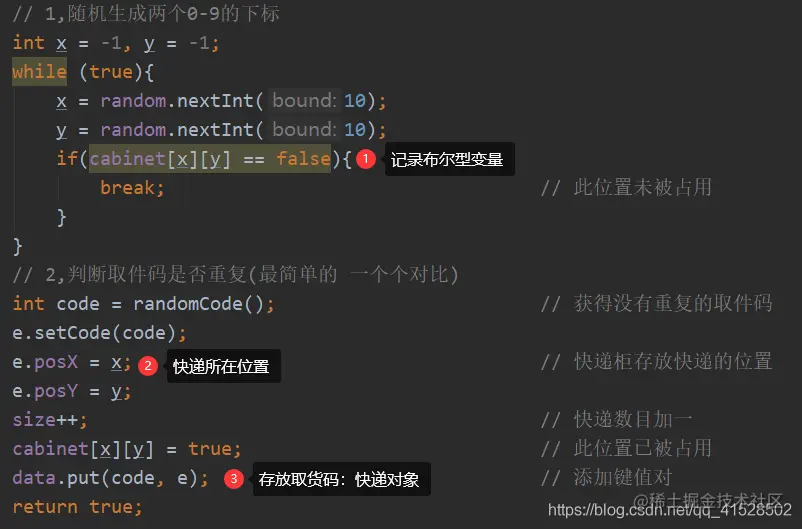 System.out.println("新快递的取件码为:" + e.getCode());