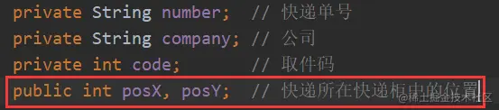 System.out.println("快递公司:" + e.getCompany() + ",快递单号:" + e.getNumber() + ",取件码:" + e.getCode());