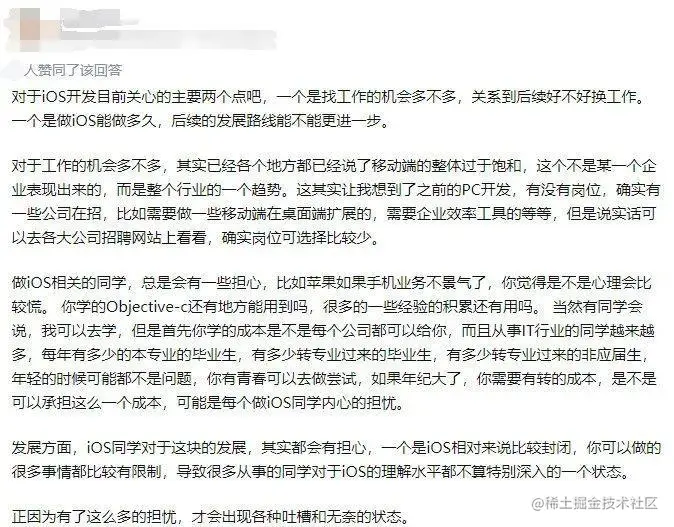 平时工作之余,我也会偶尔看下QQ交流群里面的聊天信息,最近发现群里的很多iOSer都在讨论iOS不如从前,自嘲iOS岗位没人要。