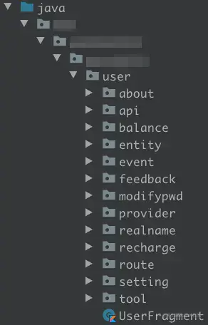 一个组件通常含有一个或多个功能点,比如对于用户组件,它有关于界面、意见反馈、修改账户密码等功能点,在 module 中为每一个功能点创建一个路径,里面放实现该功能的代码,比如 Activity、Dialog 、Adapter 等。除此之外,为了集中管理组件内部资源和统一编码习惯,特地将一部分的通用功能路径固定下来。这些路径包括 api、provider、tool 等。