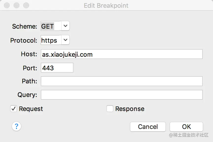 Proxy->Breakpoint Settings->勾选Enable Breakpoints 然后Add: