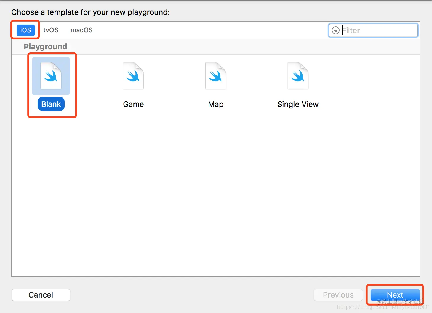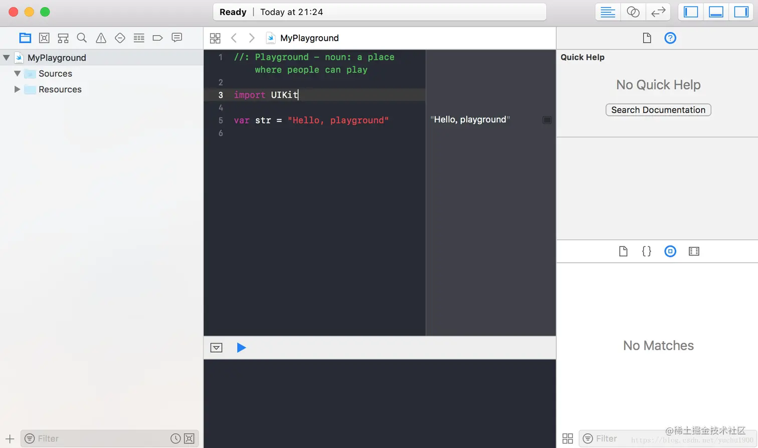 本章只是为了让大家更快更好学习Swift语言,所以只需要建一个最简单的Playground工程,其好处是可以快速的编译并查看结果。