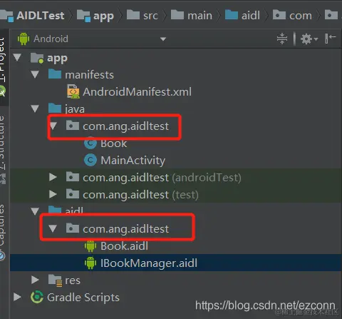 1,AIDL文件所在的包名和项目包名不一致(下图是正确的)