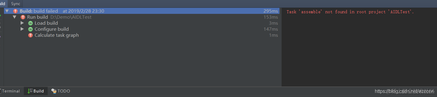 用AndroidStudio 打开项目的时候出现 Task 'assemble' not found in root project 'AIDLTest'.异常 ;我的项目名是 AIDLTest