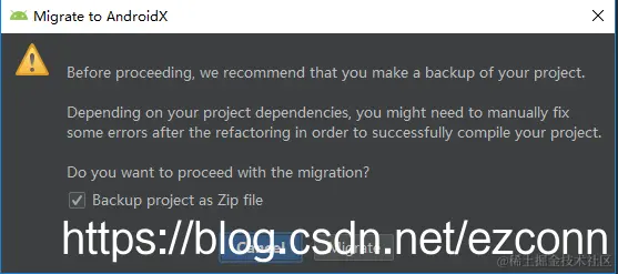 3.3,勾选Backup project as Zip file 选项(即:在开始迁移之前备份项目的选项),点击Migrate备份项目代码,一路下一步;中间会涉及选择存储路径,选择备份项目的存储路径即可;