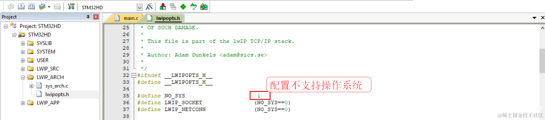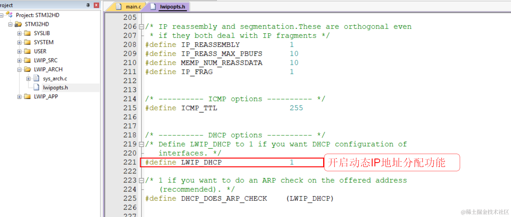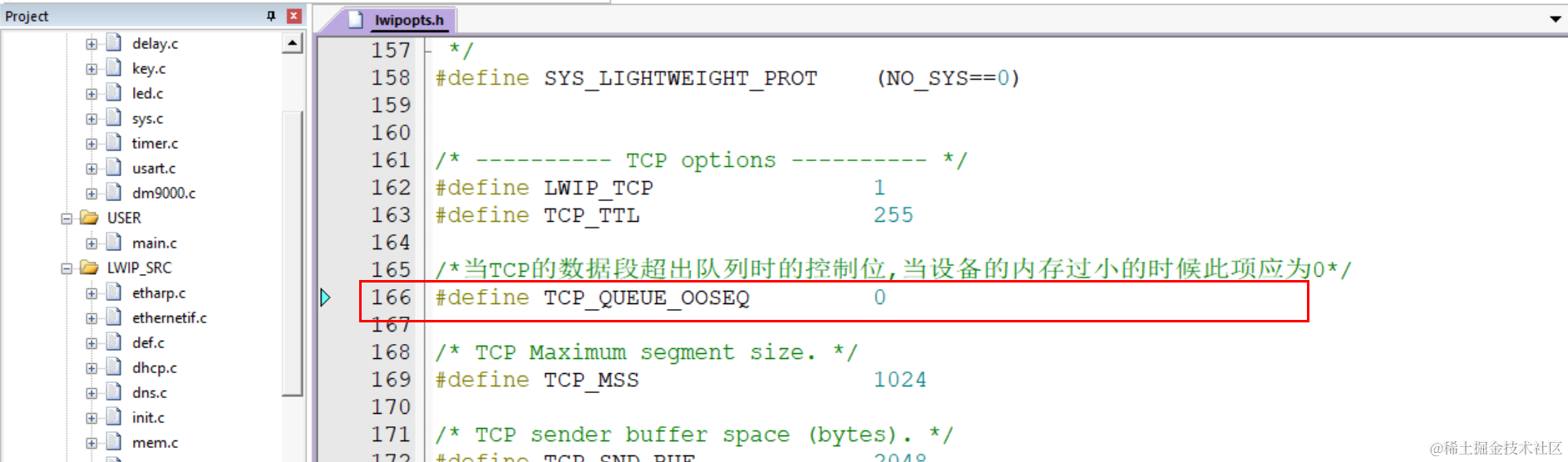 LWIP可以选择使用系统库自带的函数malloc/free进行管理空间,也可以使用lwip自己的内存管理函数进行管理,源码默认就是使用lwip自己的内存管理方法,就是在初始化内存的时候定义一个数组,数组的大小在lwipopts.h文件MEM_SIZE宏定义的。