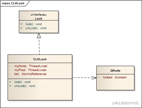 - 当一个线程需要获取锁时,会创建一个新的QNode,将其中的locked设置为true表示需要获取锁。