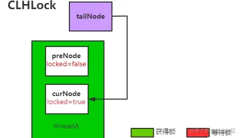 CLHLock上还有一个尾指针,始终指向队列的最后一个结点。